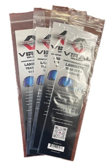 Viralブランドのティアオフは、シグネチャーシリーズとアルファシリーズのゴーグルにフィットし、完璧な視界を実現します。20個パック、50個パック、ラミネート加工の14個パックをご用意しています。今すぐご購入ください。